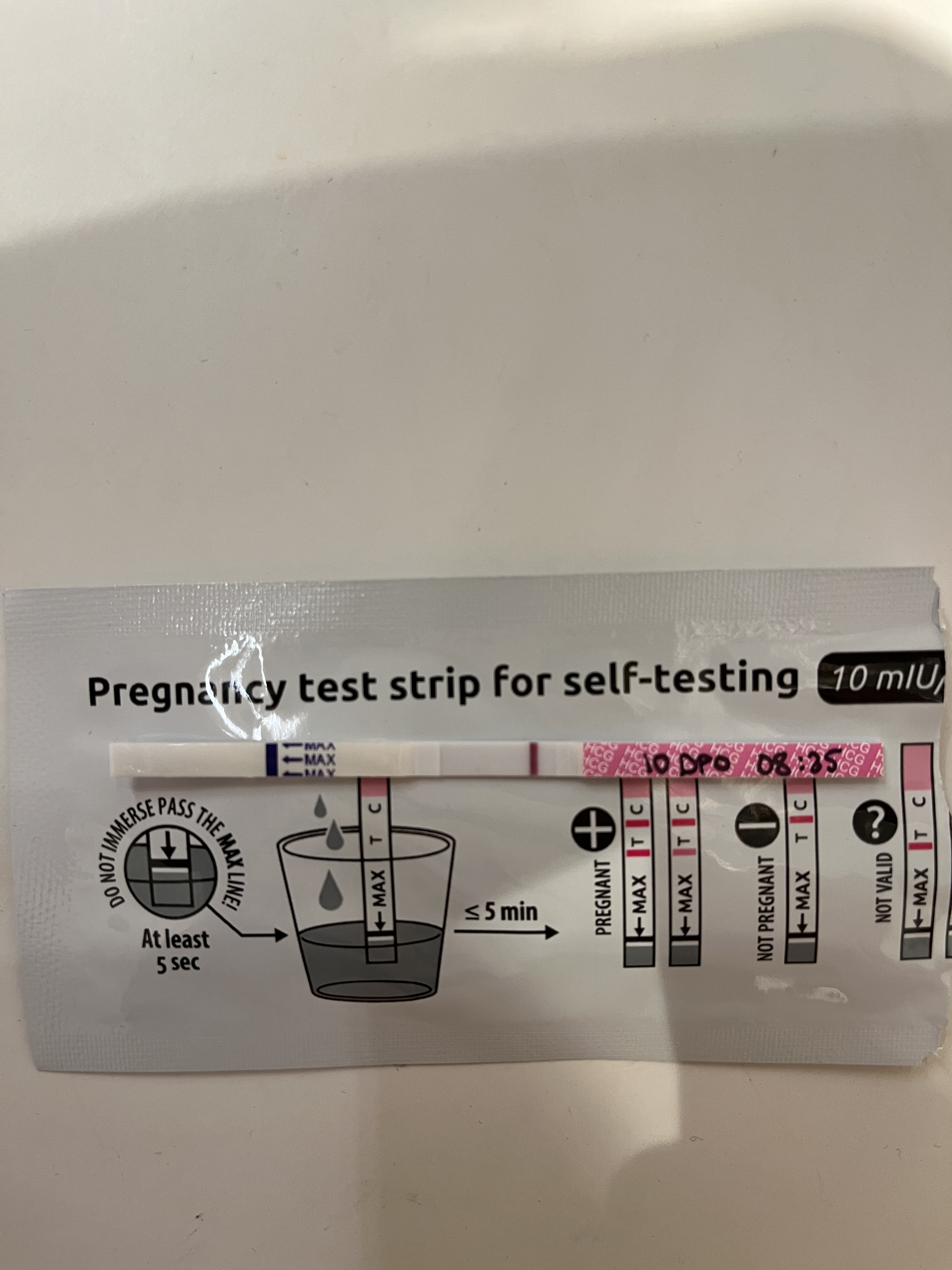 Tror jeg er 9 DPO, har testet siden 7 DPO, men bare fått blenda tester frem til i morges. Synes jeg ser antydning til noe på denne? Jeg er klar over at det kan være skyggestrek, men siden alle testene jeg har tatt er fra samme batch, krysser jeg fingrene for at det er stigning/strek jeg ser!