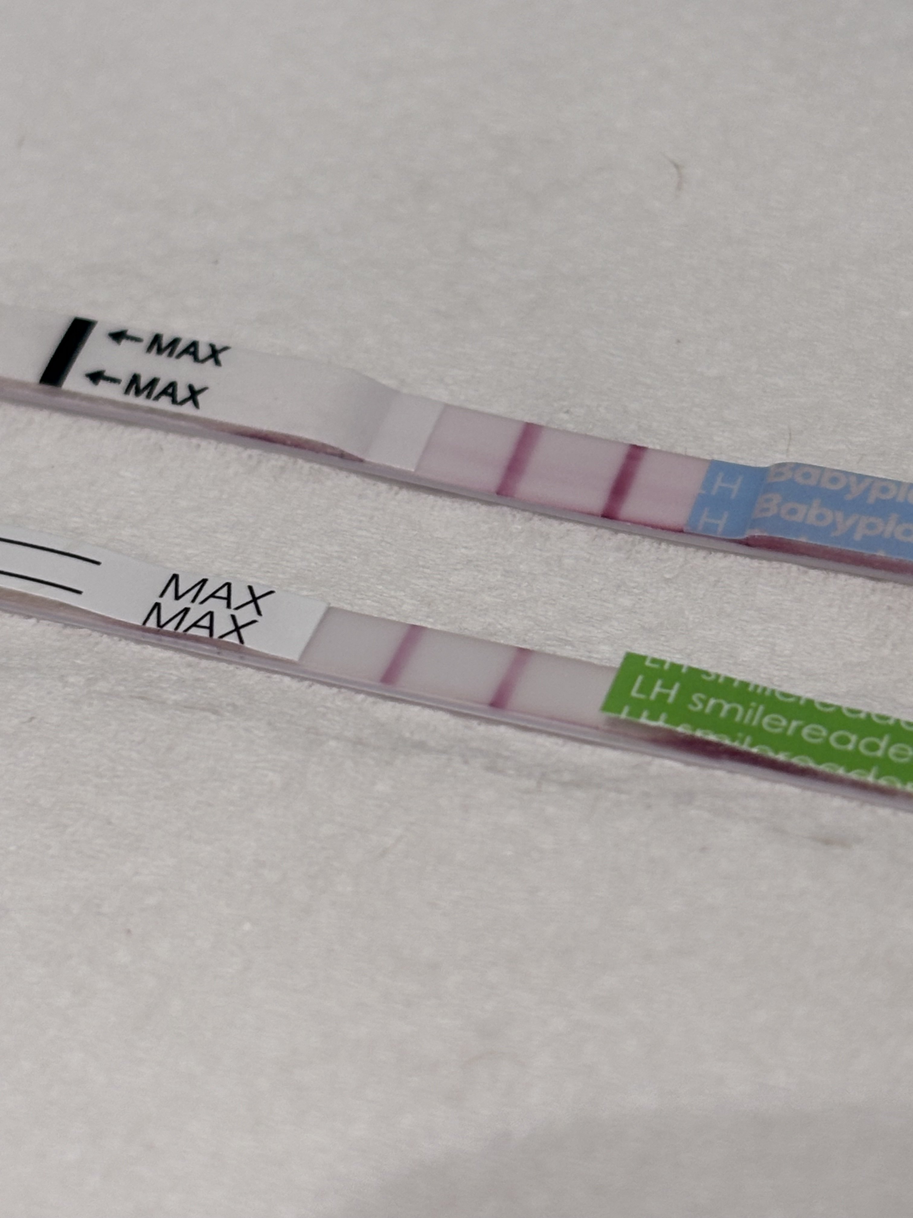 Ja, prøver igjen i kveld. Disse to jeg har brukt nå er fra to ulike batcher. Brukte strimler fra første batch forrige syklus og da var de alle helt negative. På fredag var også nest siste strimmel fra denne batchen negativ. Prøver ikke å få håpet for mye opp.Men jeg syns jeg aner noe på det første bildet ditt også, hvor fargestoffet ikke er helt trukket tilbake enda! Kanskje forsøk en til om noen timer? Burde ikke bli så tydelig skygge på 3 ulike tester i hvert fall, selv om det selvfølgelig kan være at hele bunken er defekt…