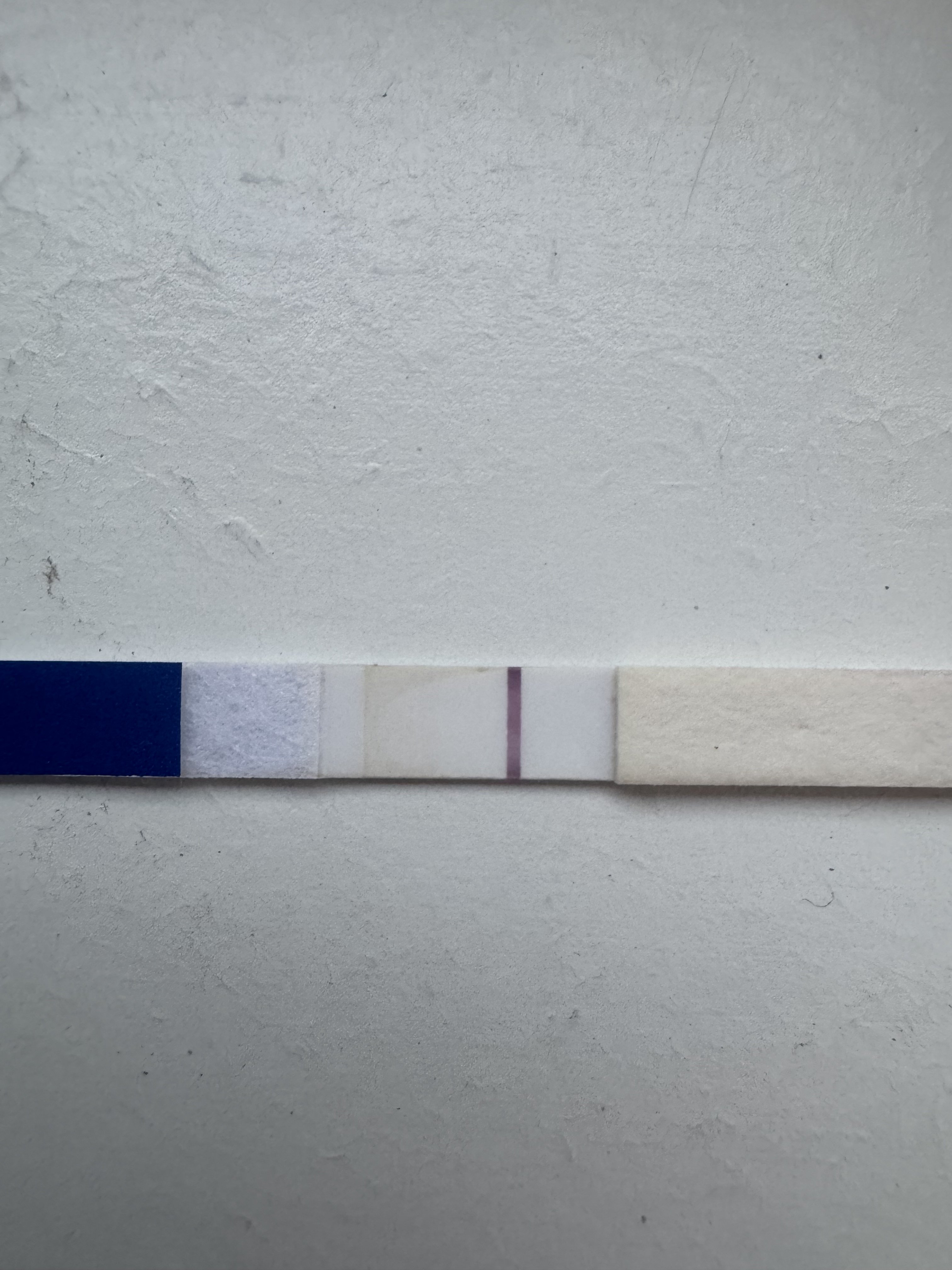 Her er dagens test, tatt med morgenurin. Jeg ser ingenting på denne. Noen som ser noe?