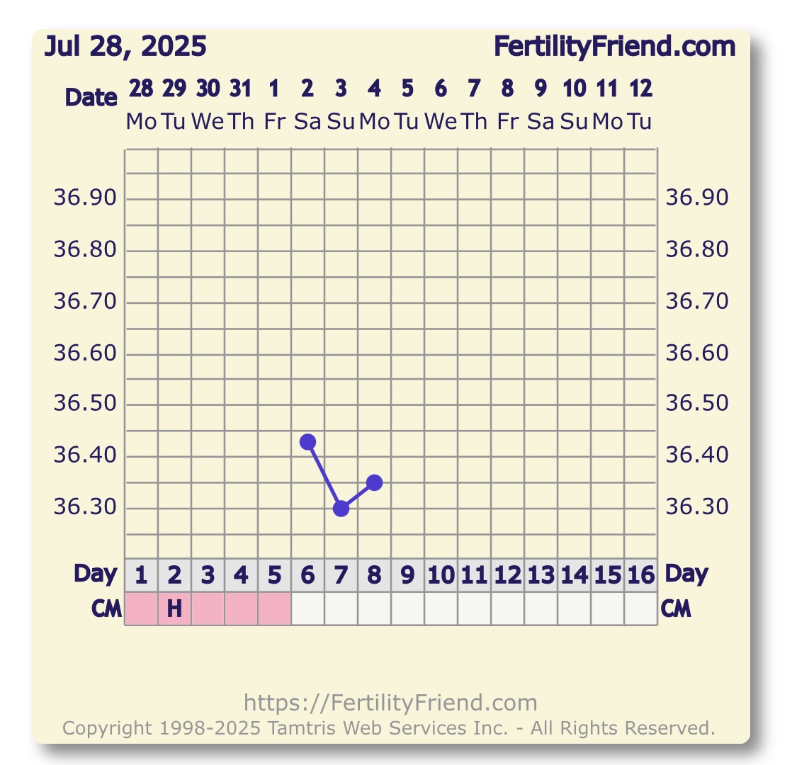 Det gjør du helt sikkert. Har du lagt merke til stigning allerede ?Den viste høy igår også. Så vi bare kjører på uansett vi, nå. Temper også på tredje dagen. Så ser jo kanskje noe der også om det blir eggløsning nå.