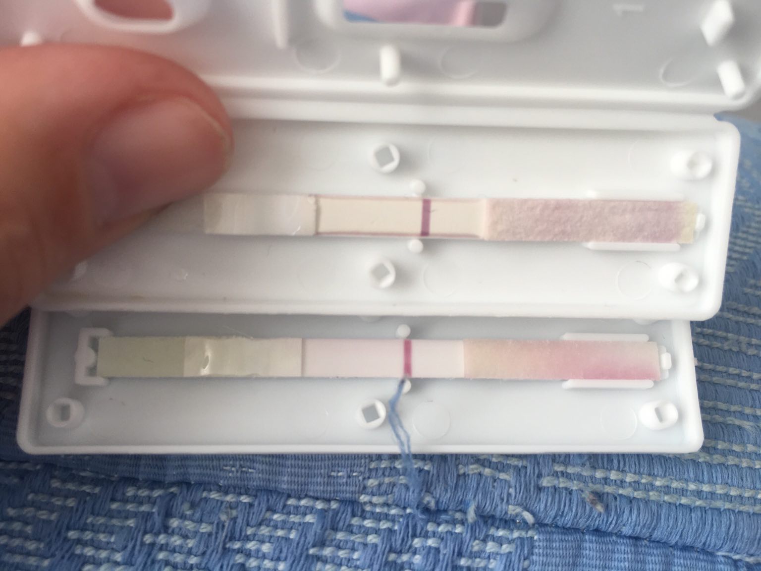Det er bare å sprette den oppEr det forresten noen av dere som har forsøkt å åpne Lloyds Pharmacy-testene? Hvordan åpner dere tester egentlig?Klarer liksom ikke se om det er farge på streken gjennom glasset... "Skyggen" er mye sterkere nå noen timer etterpå, men det er kanskje vanlig.