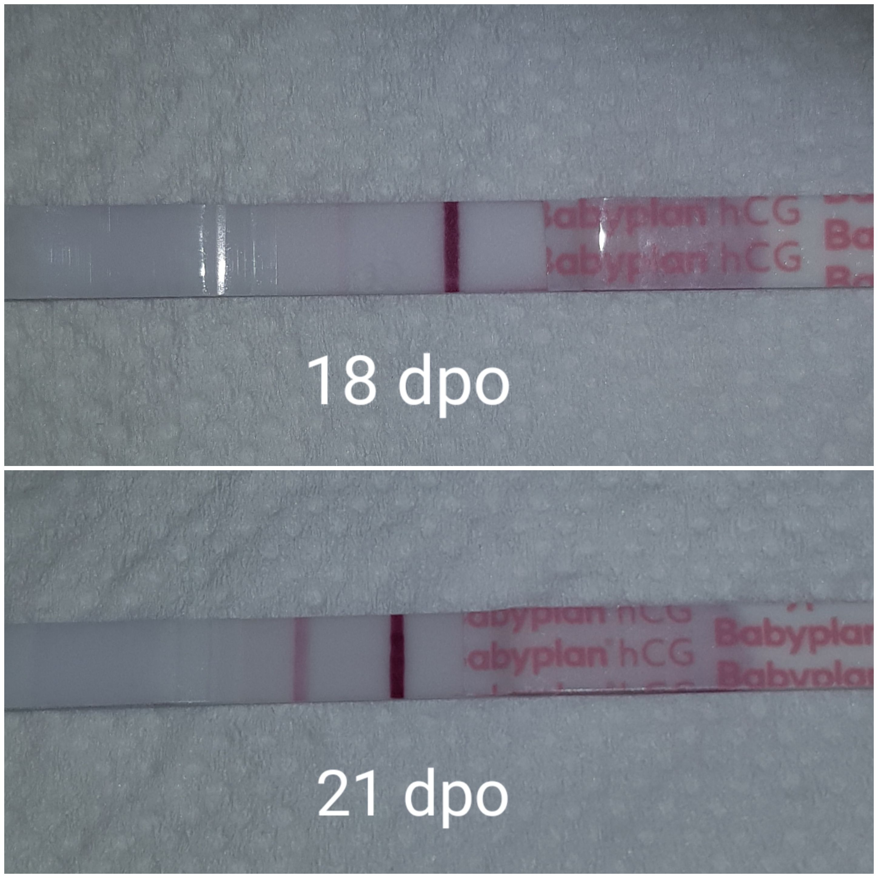 Veldig tydelig strek til å bare være 7 dpo. Kan el vært tidligere eller har dere kanskje laget flerlinger☺️ Eller dyppet den i urinen med feil ende. Det gjorde jeg nemlig ved et uhell. Da fikk jeg sånne streker, men var ikke gravid altså. Håper det er spire på gang da❤️