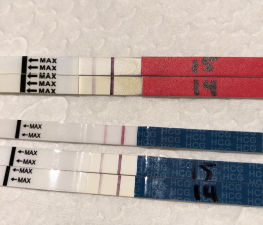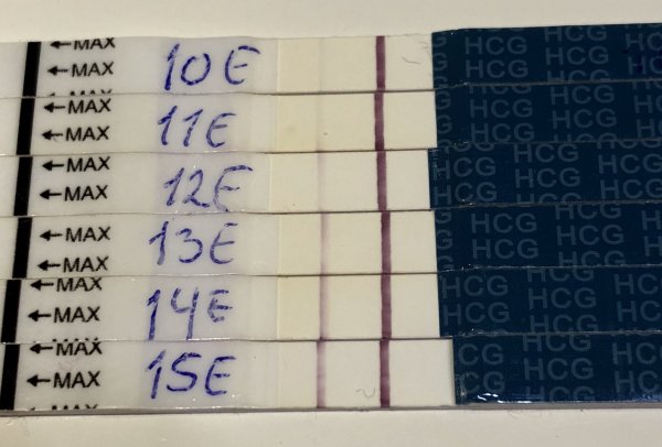 Sammen med testen tatt 13E så fikk jeg gravid 2-3 på den digitale til CB som vil si HCG på rundt 150-200. Var glad jeg var fri for tester etter 15E :p