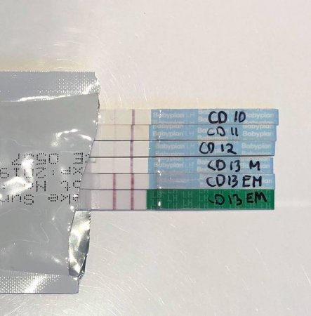 Jeg kan nevne at jeg har kort LH-topp og ofte ikke får helt positive tester (men har fått bekreftet el tidligere ved blodprøve). Disse er også tatt idag, så morgendagen vil jo vise om det stiger eller synker igjen. Foreløpig ingen andre åpenbare symptomer :)
