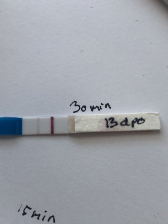 Har hatt 6 kjemiske og en sa siden vi begynte å prøve å lage et søsken, så please vær 100% ærlige :angelic: Er nederste testen her (A1 test, bare tatt av plasten) for svak for 13 dpo?