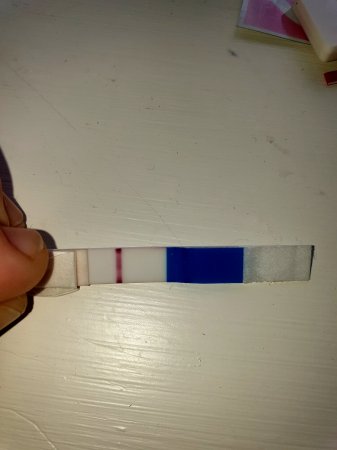 Jeg vet jeg ikke skulle teste noe mer før onsdag eller torsdag, men klarte virkelig ikke la være.. Jeg brant av en av de cb tidlig, bare for å se om det kunne være skyggestrek på de fra babyplan for sikkerhetsskyld. Tenker at det ikke kan være mulig å få skyggestrek på alle? Den fra cb ser slik ut 12 dpo kveld. Jeg sa til meg selv når vi begynte å prøve, at jeg ikke skulle ta helt av med tester, men det gikk jo ikke spesielt bra :banghead: