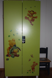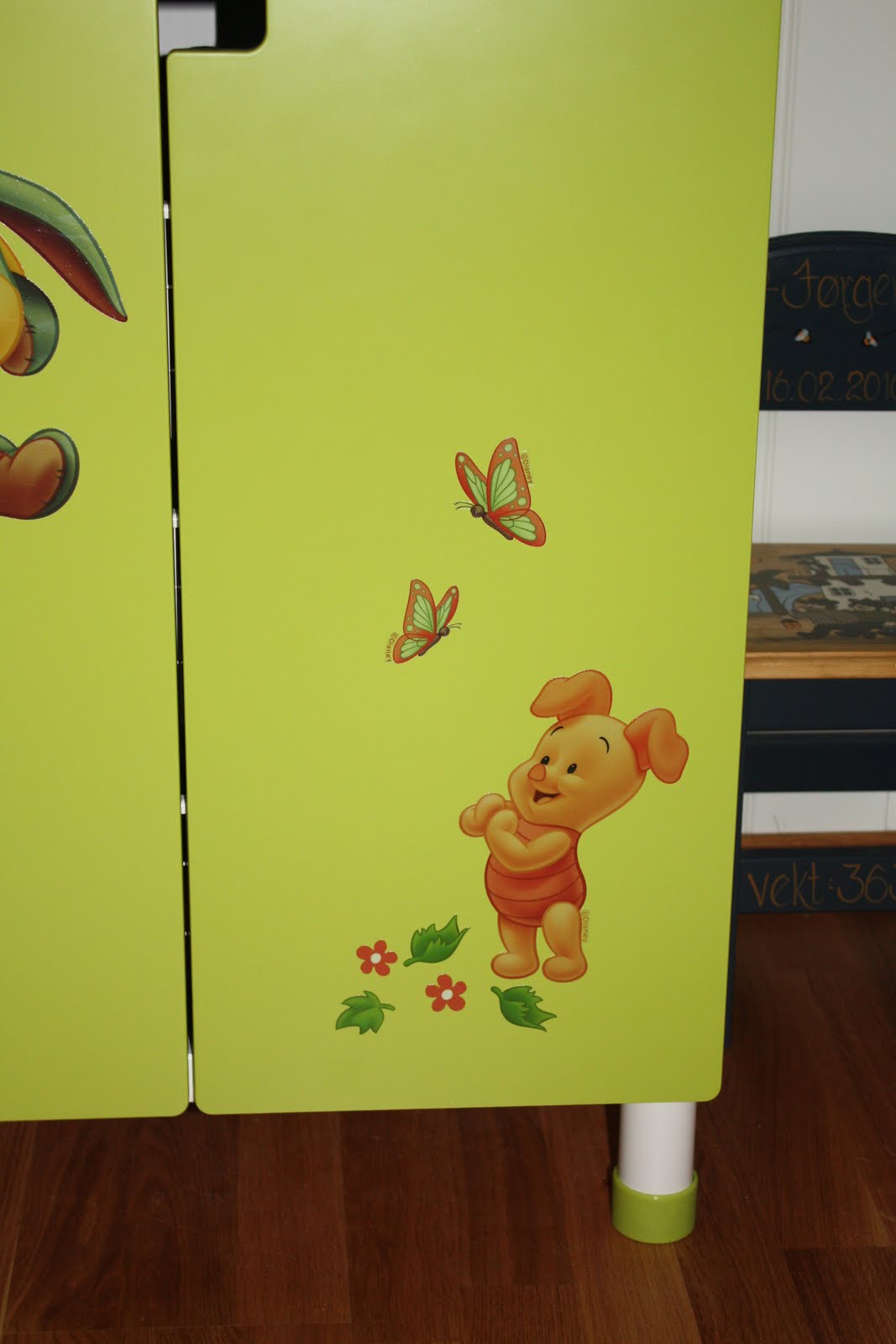 Synes det var litt knæsj farge, men de hadde ikke flere blå igjen, så da valgte vi grønt. Tenkte meg litt om og fikk lyst til å prøve meg på wallstickers for å tone det ned litt. Gikk inn på ebay og bestilte. Og sånn ble resultatet: