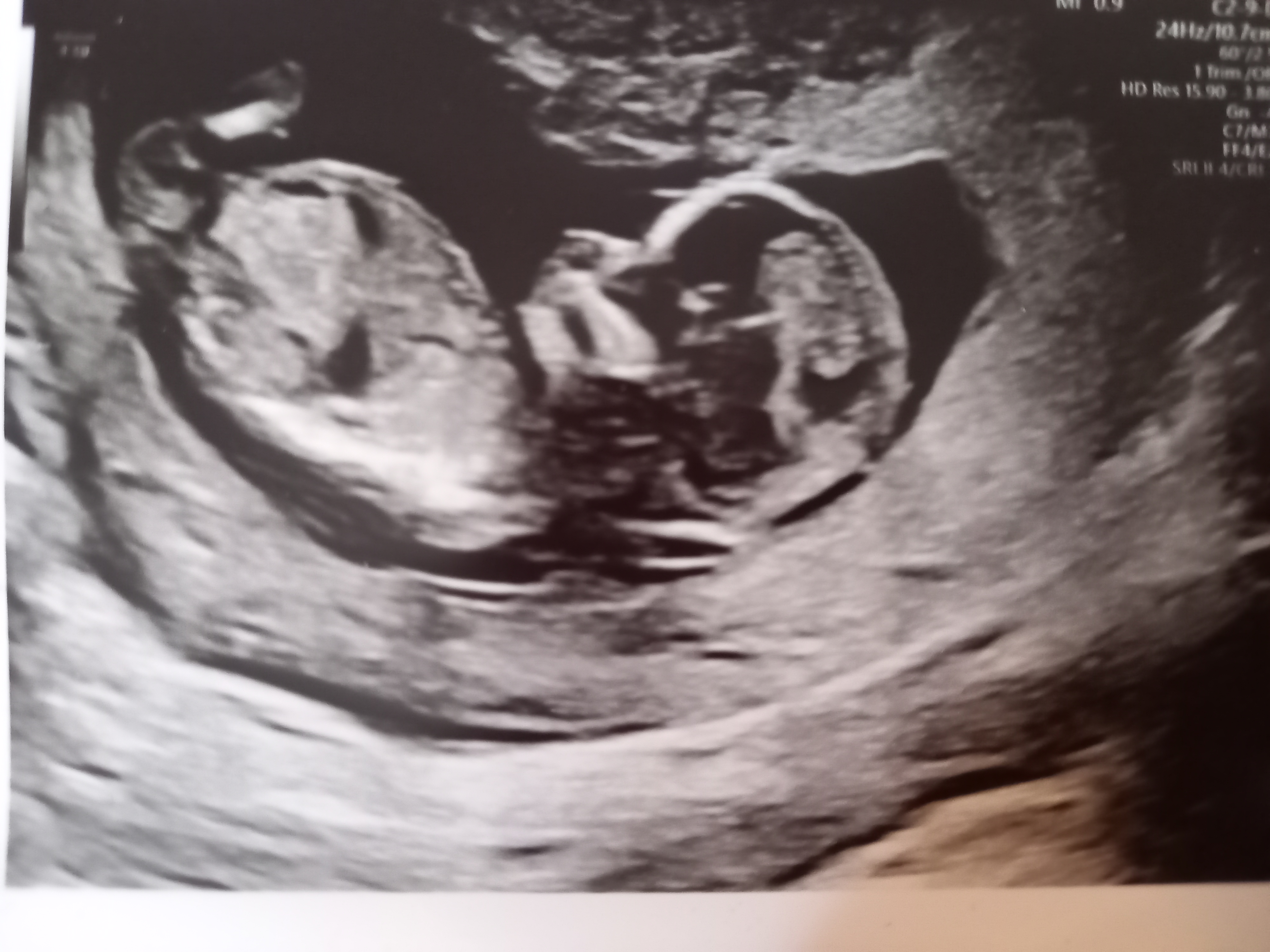 De var to stykker, hun som gjorde det meste virket som hun var under opplæring, de har jo nettopp begynt med TUL ca. uke 12 for alle nå for en måned siden. Med én gang hun satte den dingsen på magen, så vi med én gang at der var det en liten baby som bevegde på seg!