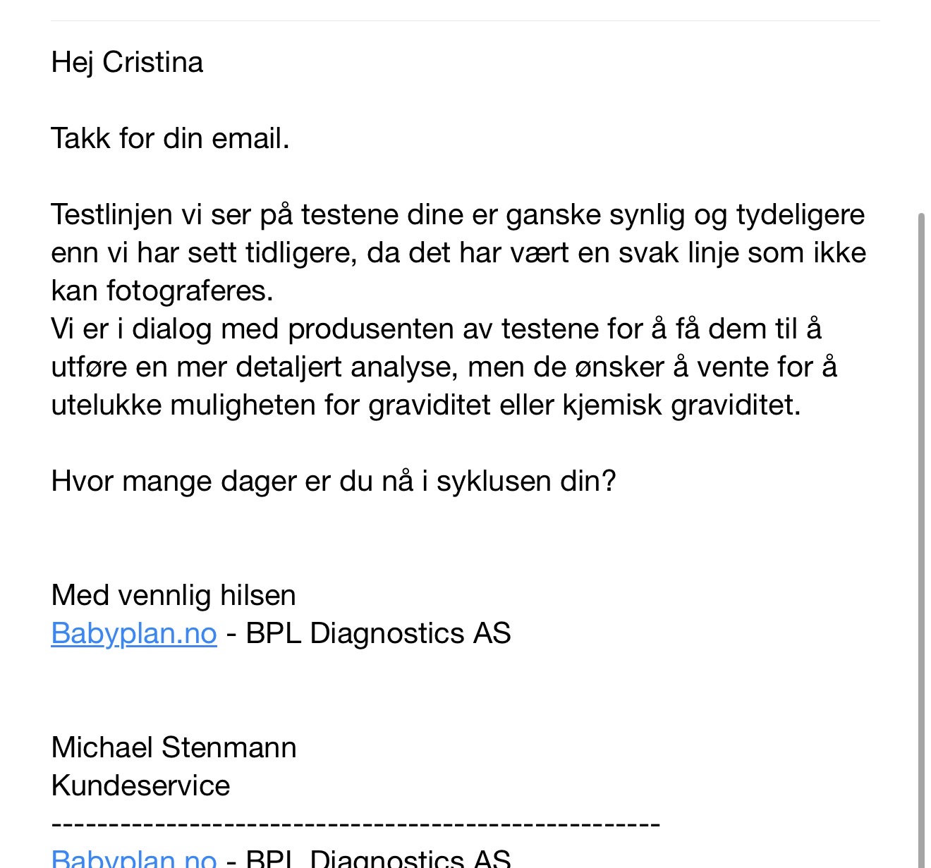 Dette var BP tidlig stav dagen etter fra samme pakke/bestilling. Helt blank, helt blenda. Kan hende at jeg hadde kjemisk den syklusen, men hadde negative tester i flere dager etter den forferdelige skyggen før jeg fikk mulig positive tester… dessverre :confused: