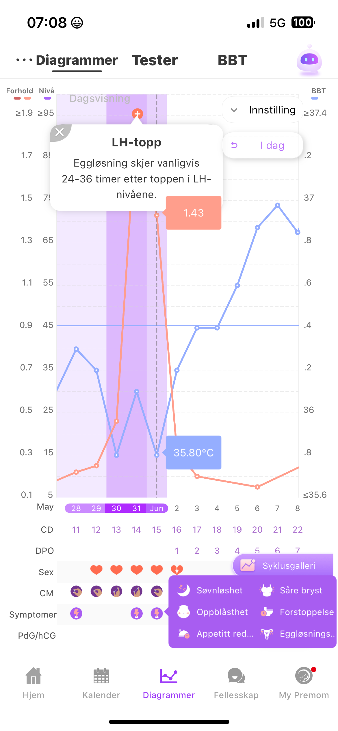 Hahaha ja det er kjempegøy! Men dumt at man gleder seg så mye at man våkner ofte om natten :hilarious: Selv om man egentlig ikke skal se på enkelttemp så gjør man jo det, og analyserer etter graviditetstegn :laughing002 Noe tidsfordriv må vi ha i DPO-land!