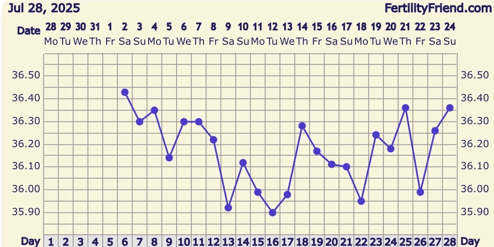 Nå skal tempen skyte i været fremover så lenge som du har ruga på gulleggetEn del stikk og murring nå. LH test har sunket mer. Venter bare på tempen imorgen som må litt opp.