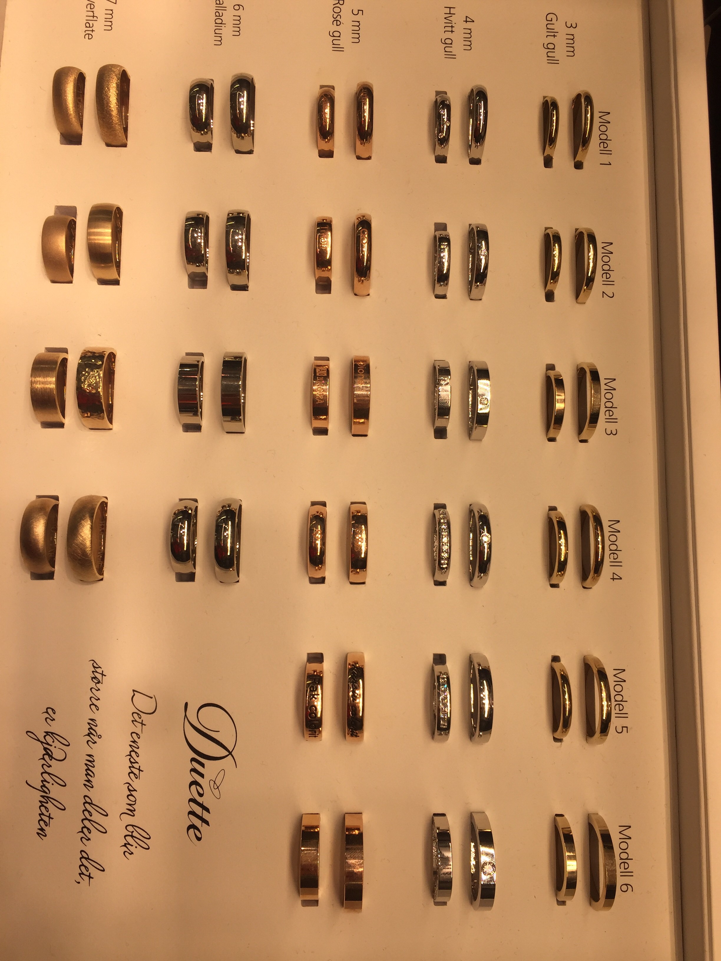 Du kan velge mellom 7 forskjellige overflater på ringene og du kan også få utvendig eller innvendig gravering. Eller både innvendig og utvendig gravering :)