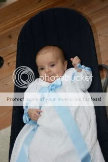 Theodor var kjempe flink i kirka, han sov hele tiden utenom under prekenen. Da lå han våken og fulgte med på presten.