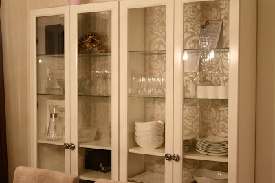 Har tapetsert stueskapene våre - fra Ikea!!