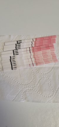 På testen min i dag ser jeg at teststreken er sterkere selv, men Premom er ikke enig, så den har ikke alltid rett. Og jeg ville kanskje sluttet å teste med strimler nå hvis jeg var deg![]()