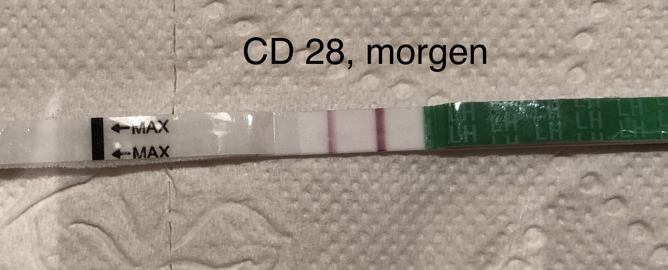 Nære på positive tester tidlig fredag og på ettermiddagen. Med stor sannsynlighet hadde jeg positivt sent fredag/natt til lørdag. Masse murringer lørdag og noe jeg tror var EL-slim på søndag. Allerede søndag var det svakere test igjen (CD26). I dag er den sterkere igjen (CD28) :eek:
