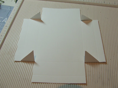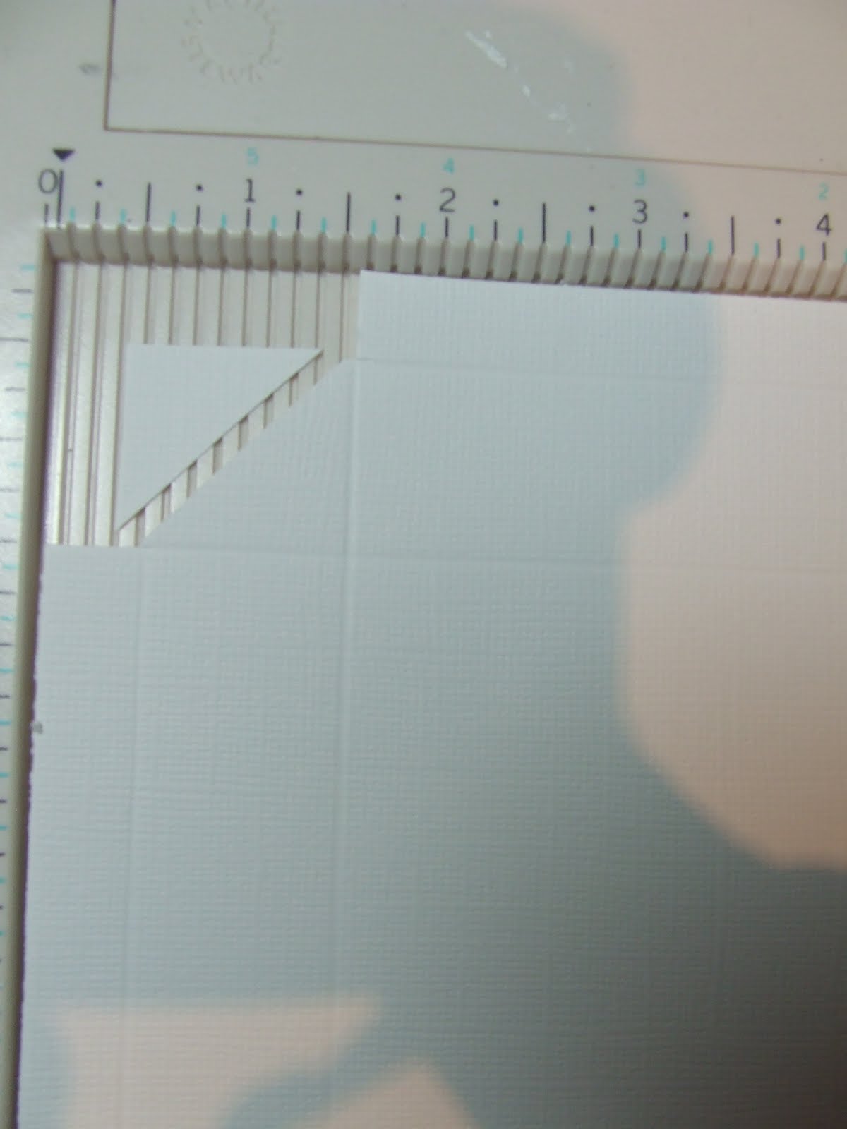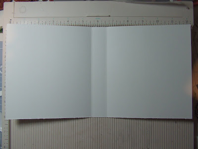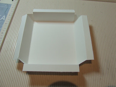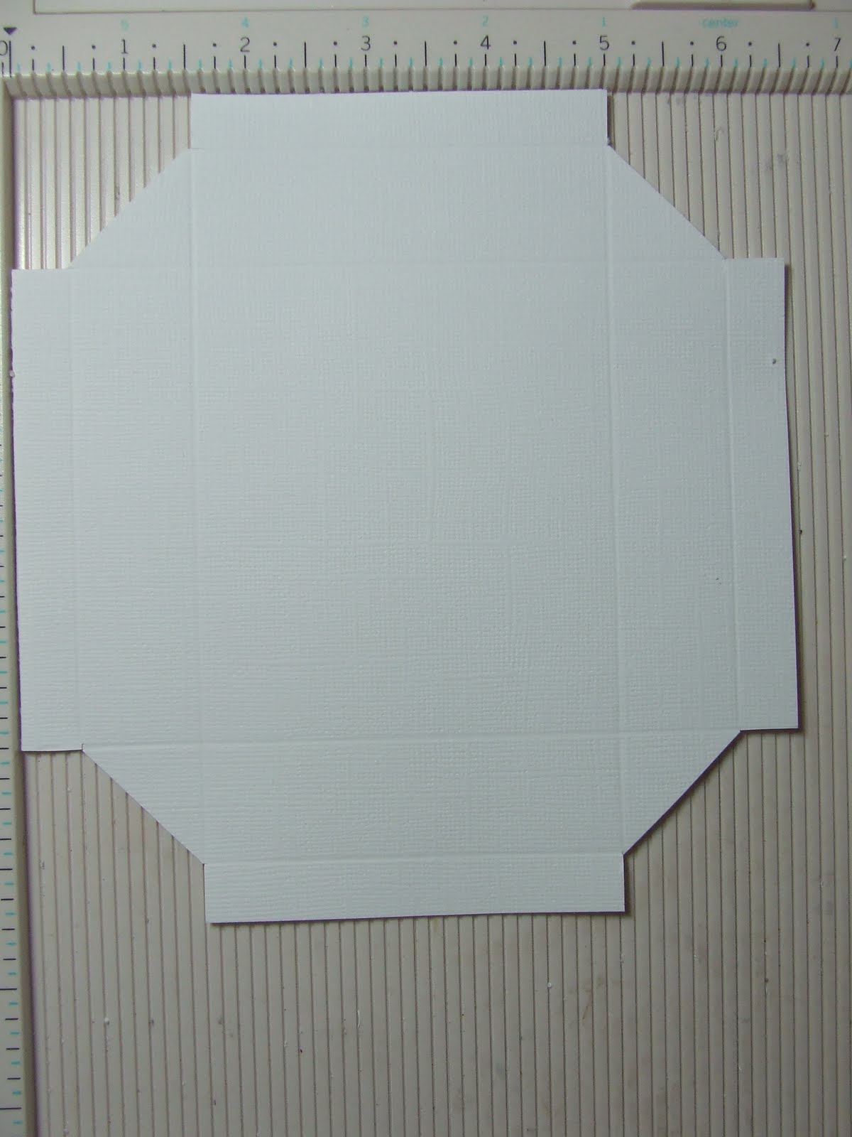 Du tar ny kartong og kutter til 6 1/2 x 7 inch og scorer på 1/2 inch rundt på alle kantene