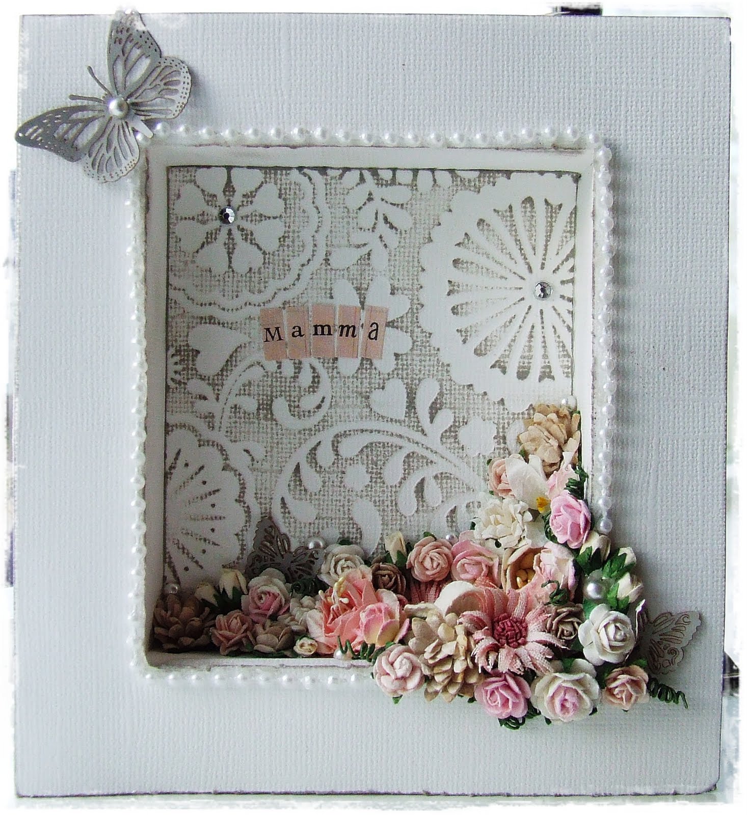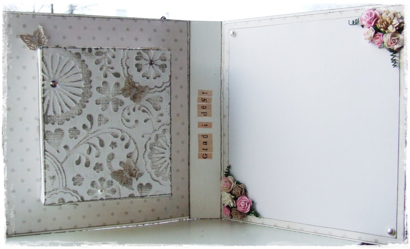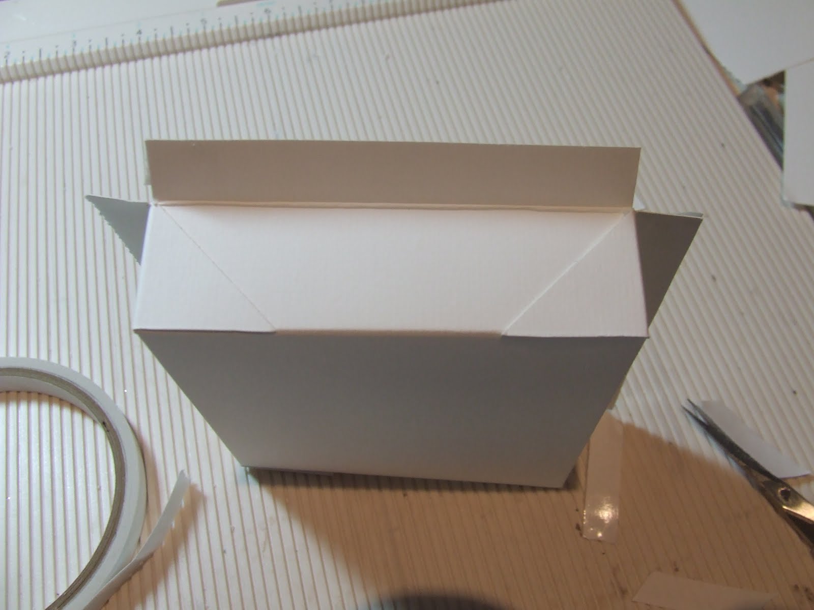 Du tar ny kartong og kutter til 6 1/2 x 7 inch og scorer på 1/2 inch rundt på alle kantene