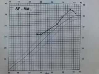 alt var bra[:)]bærer han veldig høyt oppe enda,å takk det merkes!![8D]hodet er heller ikke nedi bekkenet,men han ligger med det ned da..symfysemålet sprenges snart!!!men ho sier det ikke er noe spesielt stor unge ho kjenner,ho mener han blir rundt 4kg et sted.men hvorfor er da målene såå store[&:]må si det bekymrer meg litt..idag var det 38cm!!og jeg er i uke 36+4.er det fler som har så høye mål?sku gjerne hatt en ul jeg og vist hvor stor han er,men det er vist ikke nødvendig!!vurderer ta en privat ul,bare for å få vite..