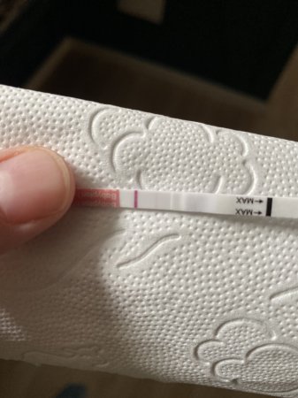 Skulle drøye med å teste mer. Tja. Dette er en tørket cb pluss fra i går. Har kikket på bilder jeg har på telefonen, og den er omtrent like sterk som det jeg hadde 13-14 dpo i høst. o_O