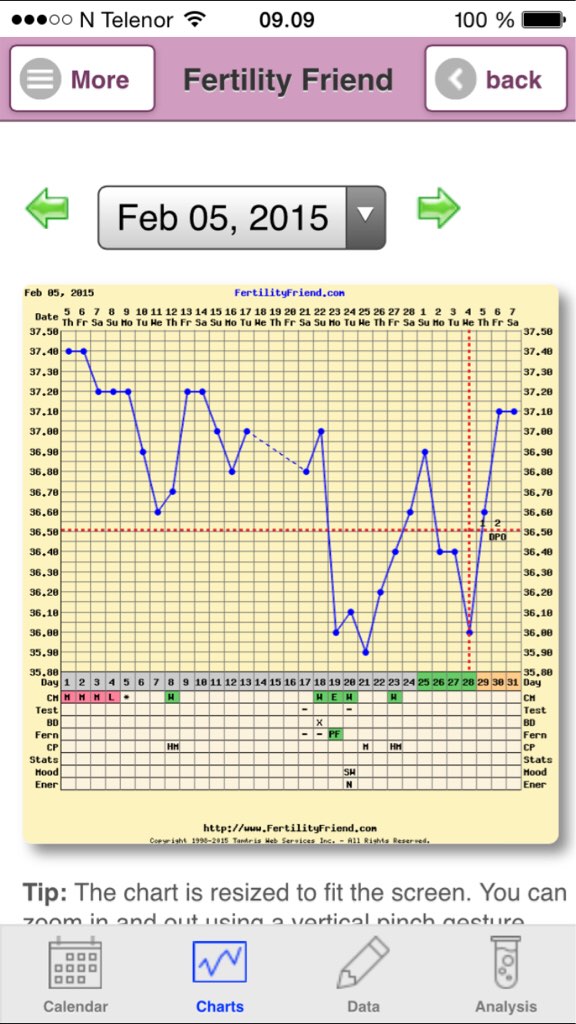 Det jeg forstod etterhvert var at jeg ikke måtte bytte side i munnen å tempe på. Det ga store variabler. Også måtte jeg stikke tuppen inn i samme grop hver dag. Dette var jeg ikke veldig flink med i begynnelsen og det ga store svingninger. Ble kjempe hakkete og veldig uforutsigbart. Nå temper jeg på samme side hver dag. I tillegg oppdaget jeg at når man temper i munnen er det lønnsomt at termometeret er oppvarmet. Det fordi det bruker evigheter på å måle hvis det er kaldt, og fordi det kan bli helt feil temp av det. Så det var mest med dette jeg kløna. Særlig kanskje å finne en grop jeg kunne lokalisere uten problemer på samme side og samme sted. Det tok litt tid..
