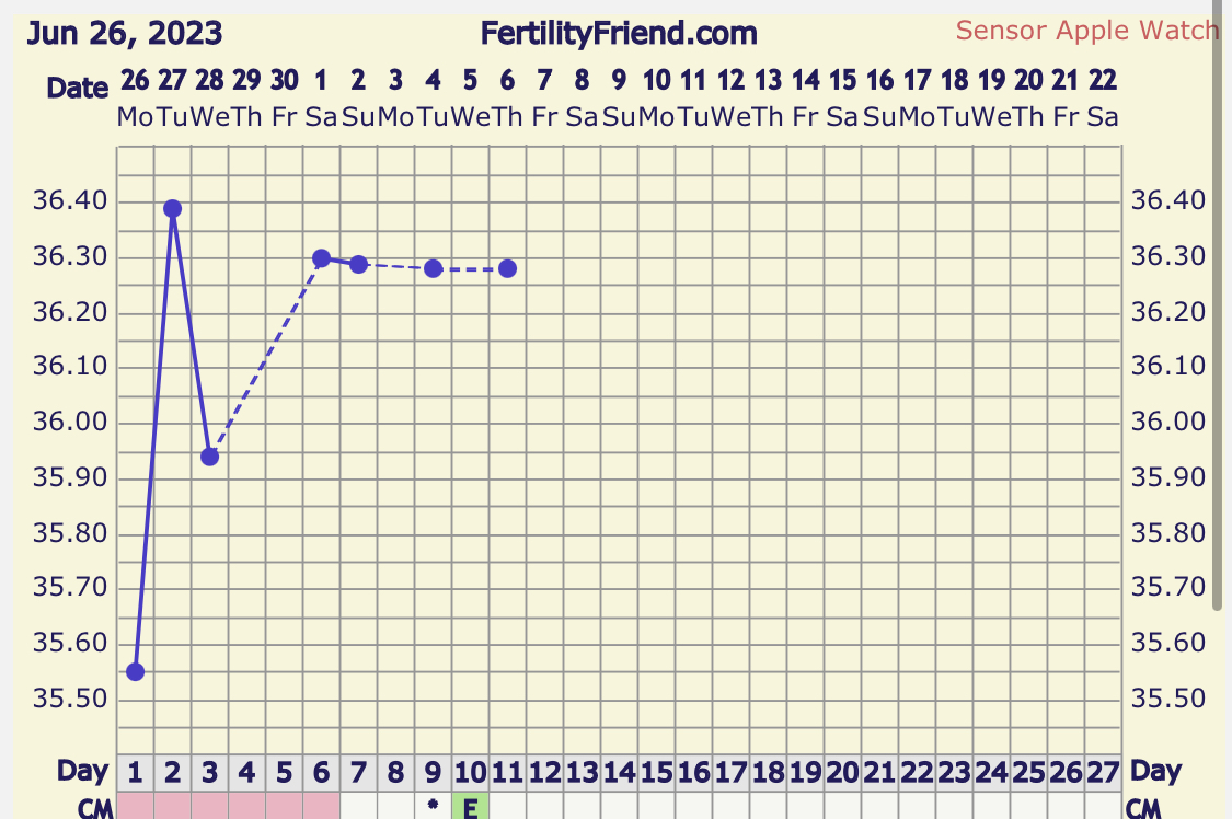 Prøvde for moro å legge inn forskjellig på CD10 for å se om kurven endret seg og om krysset kom opp. Og det kom opp på CD10 når tempen var så så lav. Mtp utflod så tenker jo jeg EL har vært enten CD10 eller CD11.