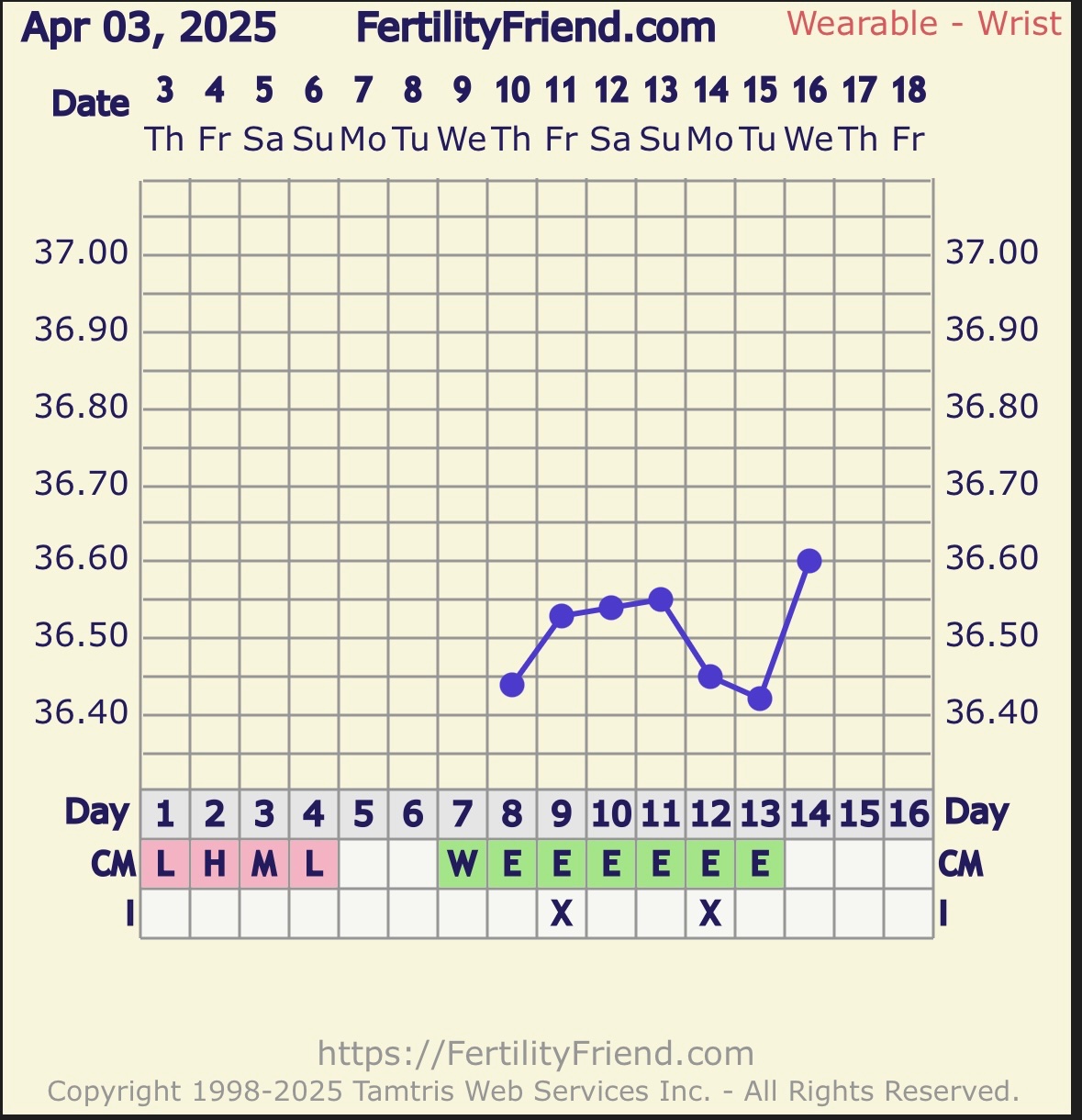 Det kaaan se ut til at eggløsning var igår, evt dersom tempen fortsetter å stige raskt - så kan FF sette eggløsning idagBlir eggløsning i morgen, så spent på hvordan den blir da