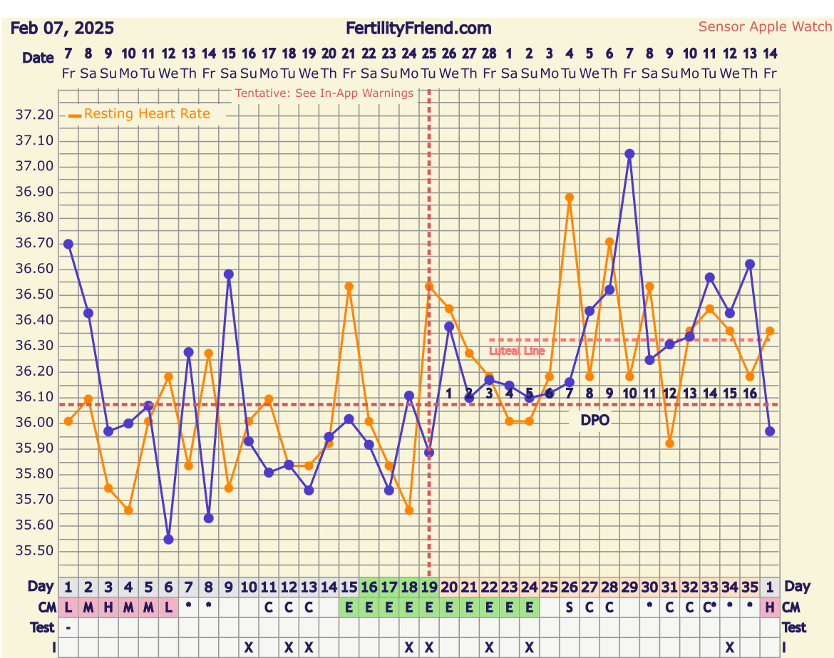 hadde en sånn syklus med vedvarende slim (10 dager) og temp som steg og dalte om hverandre. Holdt på å tørne. Så fikk jeg faktisk flere positive tidligtester den syklusen??? aner ikke hvilken dpo??? før mensen kom sånn cd 36 (pleier ha 27/28/29-dagers syklus). Veldig slitsom måned.