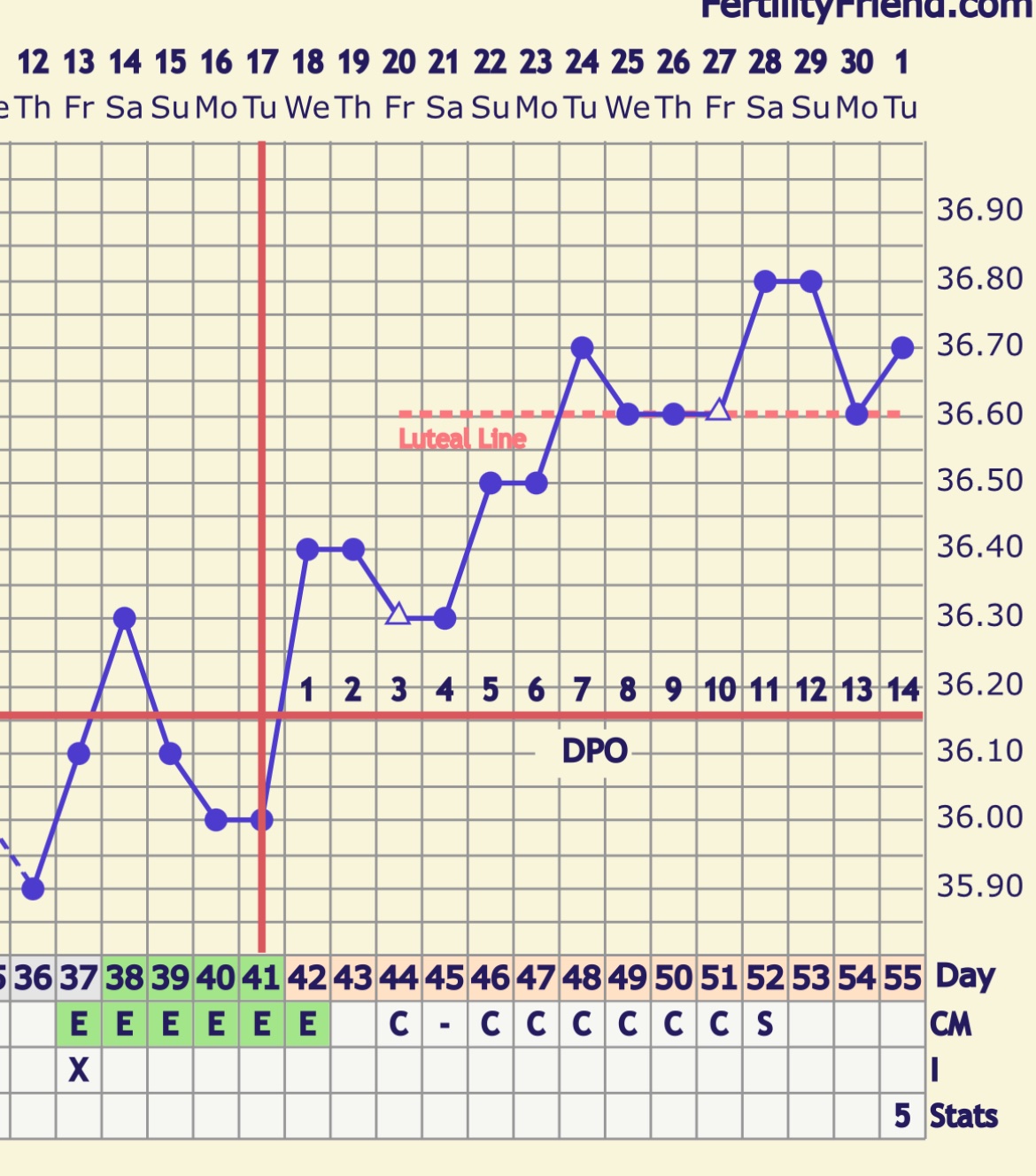 Vi er også på første og ca pp7, så der er vi jo ganske like! Temping har jeg faktisk drevet med før bare fordi jeg synes det var interessant, men sluttet når jeg fikk meg partner haha. Skulle jo uansett ikke bli gravid den første tiden vi var sammen, liksom, og så begynte jeg på p-piller (aldri igjen). Så når jeg sluttet på p-piller var jeg jo så ute av vanen og det var så trangt i vår 140 seng dyttet inntil veggen, så da kjøpte jeg faktisk en apple watch spesielt for tempefunksjonen……. kan de tusenlappene ha noe med at jeg ikke ville godta at klokketemp ikke er no tess? Kanskje