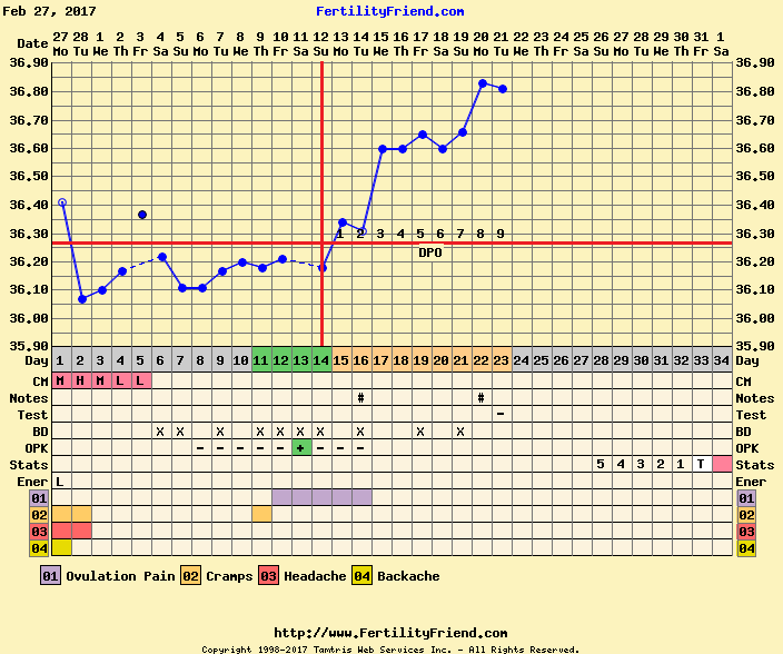 Grafen ser jo fortsatt veldig bra ut. Og fortsatt veldig tidlig å teste. Spennende! Krysser fingrene for to streker for deg om et par dager.Den ser sånn ut i dag. Gikk ned bittelitt. Tok test i dag, og den var veldig negativMen er jo bare 9 dpo, så vi får se