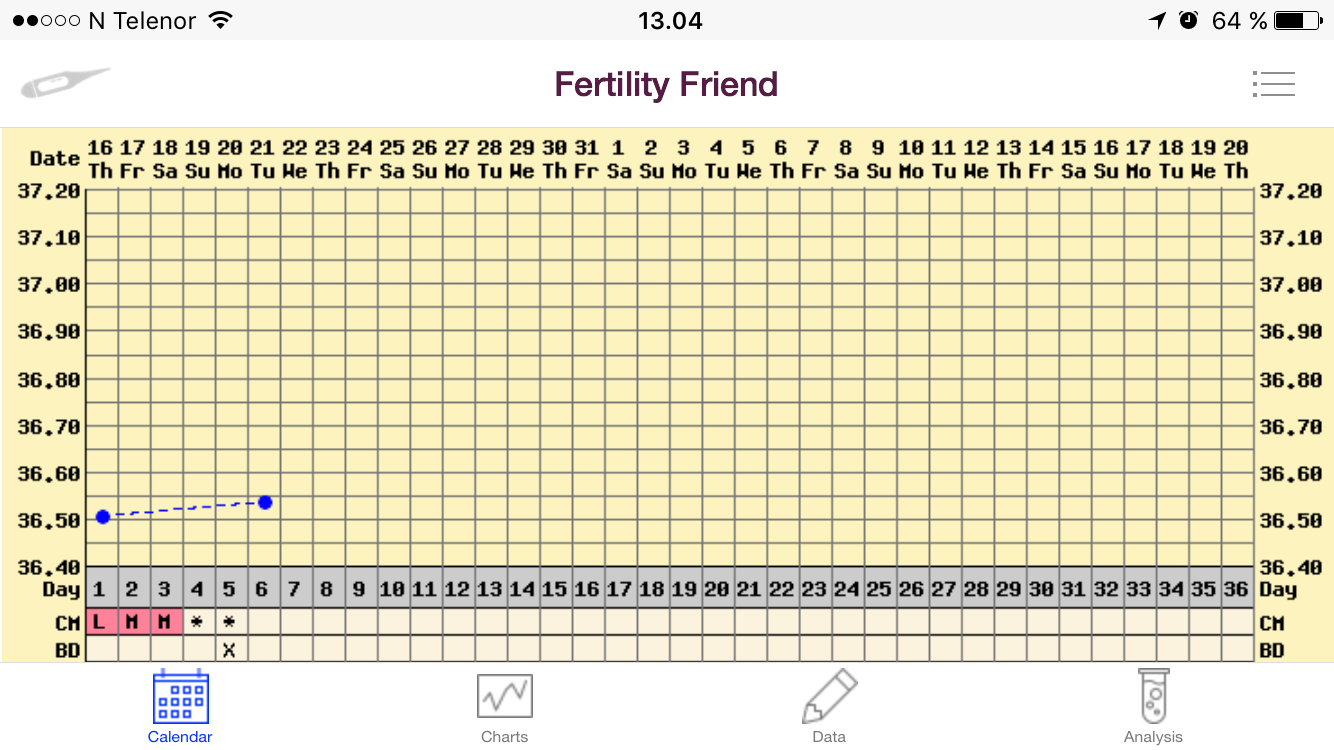 Prøvde å kalibrere termometeret igår, men da svarte natural cycles at det kunne være noe galt med termometeret mitt? Hmmm.., må prøve på nytt igjen idag [emoji848]
