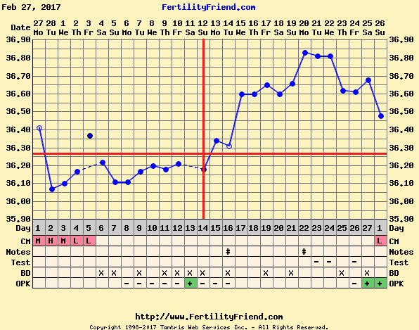 Stemmer det at eggløsningen var den 22 med tanke på basaltemperaturen og eggløsningstestene?