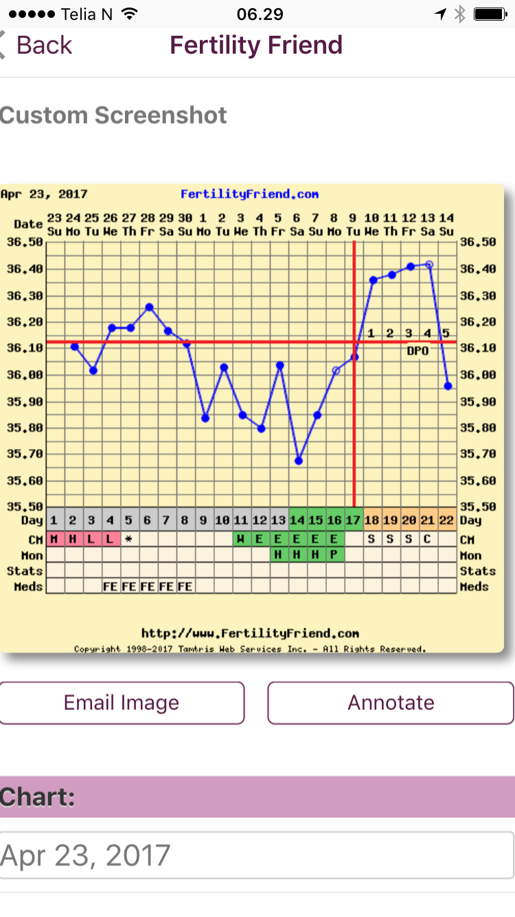 Tempen stiger ca 0,1 °C per time (når du sover, vel og merke), så om du tempet en time for sent trekker du fra 0,1, en halvtime for sent trekker du fra 0,05, osv. Men det anbefales ikke å legge inn korrigert temp, legg inn det du faktisk målte, og skriv heller den korrigerte tempen som et notat.Noen som vet hvilken side hvor man kunne endre på tempen viss den ble tatt forsent?![]()