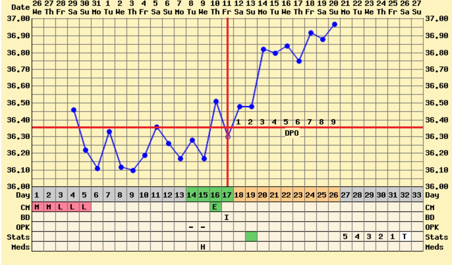 Aldri hatt så lave temperaturer etter EL før,og jeg var sikker på at tempen måtte være veldig høy og fin om man er gravid, men så feil kan en ta! :) Var nok festedipp 6 DPO da.