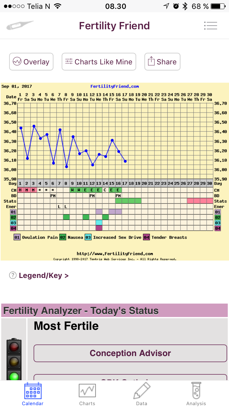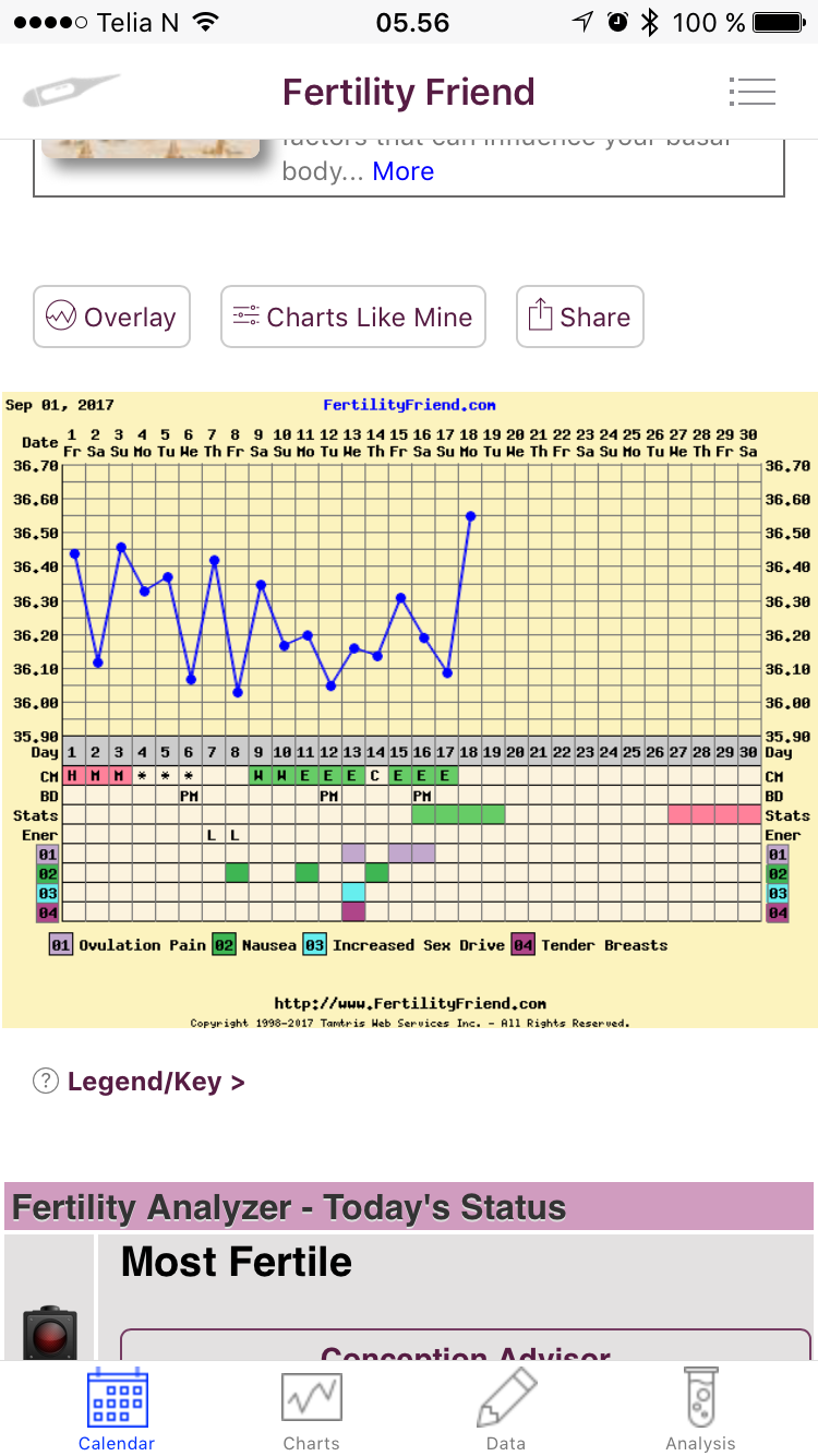 Jeg har også fått bedre rutine i løpet av ukene. Og så er det gøy å bli kjent med egen syklus. Selv om jeg håper jeg ikke trenger å føre så mange flere kurver enn den jeg startet på i dag [emoji56]. Kommer sikkert til å fortsette å tempe hvis jeg blir gravid, for å få en forsikring om at tempen holder seg høy de første ukene...