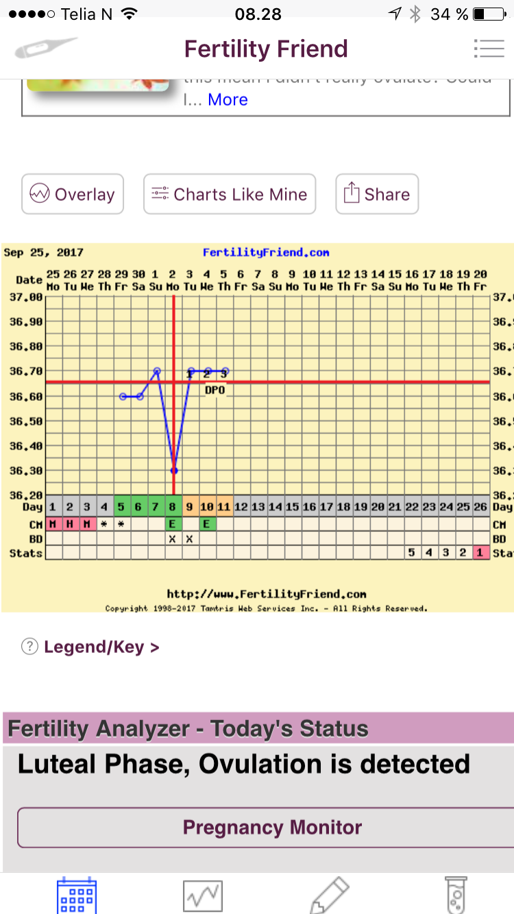 Jeg fikk pos test 2 morgener, men den ble negativ kveld dag 2. (og man kan ikke legge inn to ulike el-test resultater samme dag). Så forsvant el-streken når jeg la inn 2 positive dager, og negativ først dag 3. Uten at jeg endret noe for øvrig. Forstå det den som kan[emoji28]