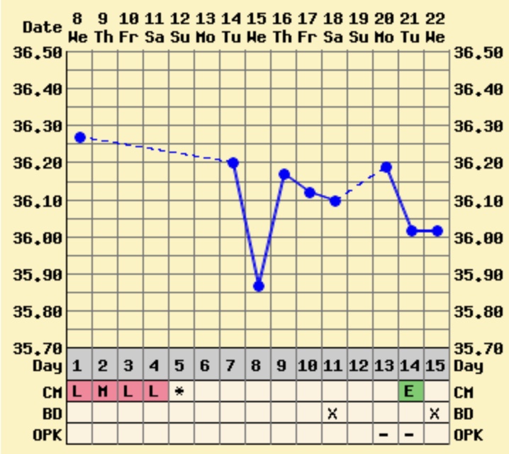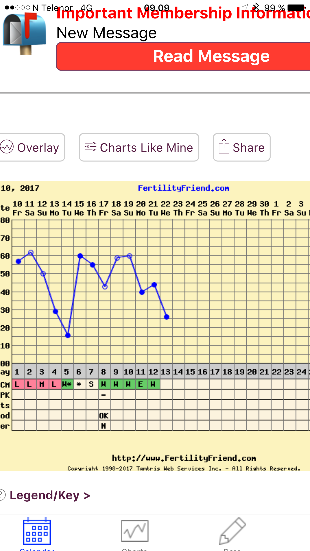 Dagens. Det kryper oppover. Følger gjennomsnittskurven min helt, så tror ikke det er noe på gang her foreløpig... Det eneste stilige er at «charts like mine» statistikken plutselig passer med 32% gravide og 5% kjemiske. Pleier å ligge rundt 25% på dette tidspunktet [emoji12] Og ja, testen i morges - fremdeles like hvit Prøver nok igjen i ettermiddag [emoji56]. Spenningen lever i hvertfall til i morgen tidlig [emoji1303]