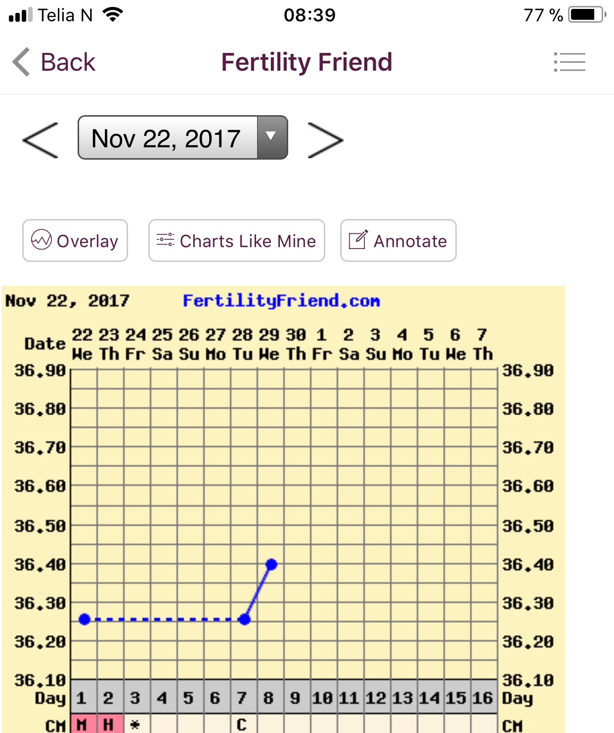 Der falt tempen, så då var det slutt for denne PP. Bestilt nye el.tester. så nå må TR komme for fullt. Påan igjen. Temp. tatt litt tidlig. Det rare er at med temp.fall så gikk statistikk i FF charts opp til 40% gravide. Ikke testa i dag, begynt å spotte så jeg så ikke hensikten.