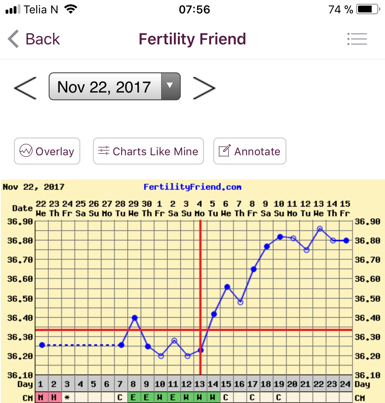 Haha, nei. Jeg måler mest for egen nysgjerrighets skyld da. Stoler ikke helt på resultatene, men gøy å sjekkeMorgentempen hadde økt bittelitt siden i går, så er nok ingen klar sammenheng der. Hadde håpet sååå på el i går, la inn aksjer på onsdag, og føler det er lenge med to dager mellom samleie og el. Får prøve ei lita runde i dag også kanskje