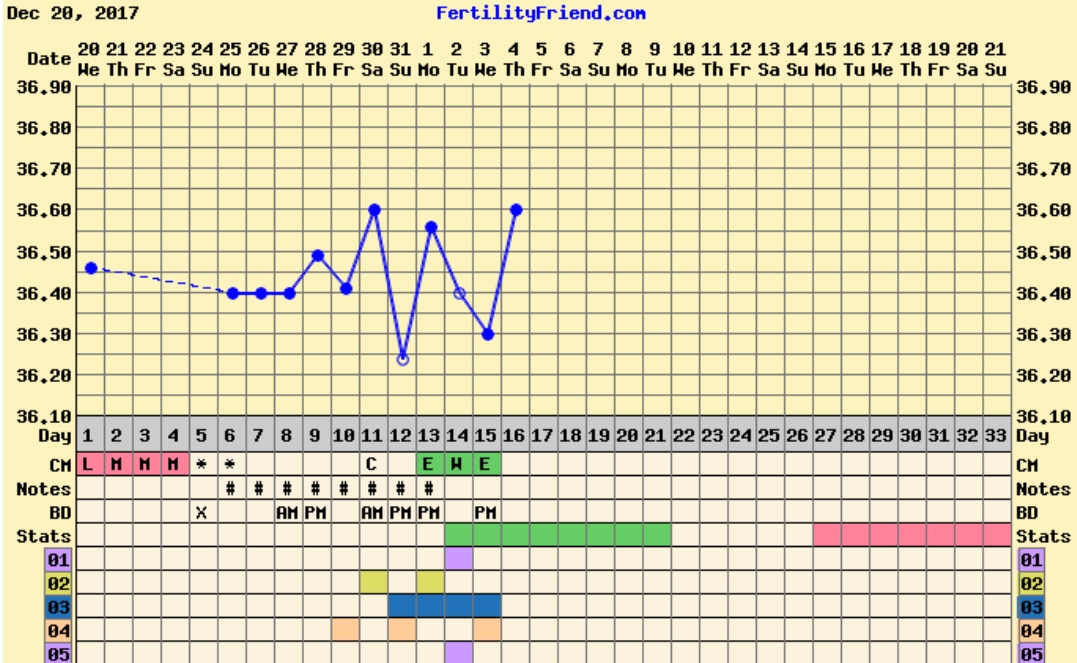 Jeg tempet senere enn normalt (1 time) 31., men etter mer enn 4 timer søvn. 2. har jeg krysset av for sleep deprived for sov nesten ikke sammenhengende den natten. Ville tro senere tidspunkt normalt gir høyere temp, selv om jeg tidligere ikke har sett noen stor forskjell ifht tidspunkt jeg temper, så lenge jeg har sovet nok.![]()