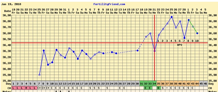 Har du fått positive tester? Da er du jo gravid, daDrit i hva tempen måler seg til. Kan jo være fordi det er kaldere ute og dermed blir kaldere på soverommet.