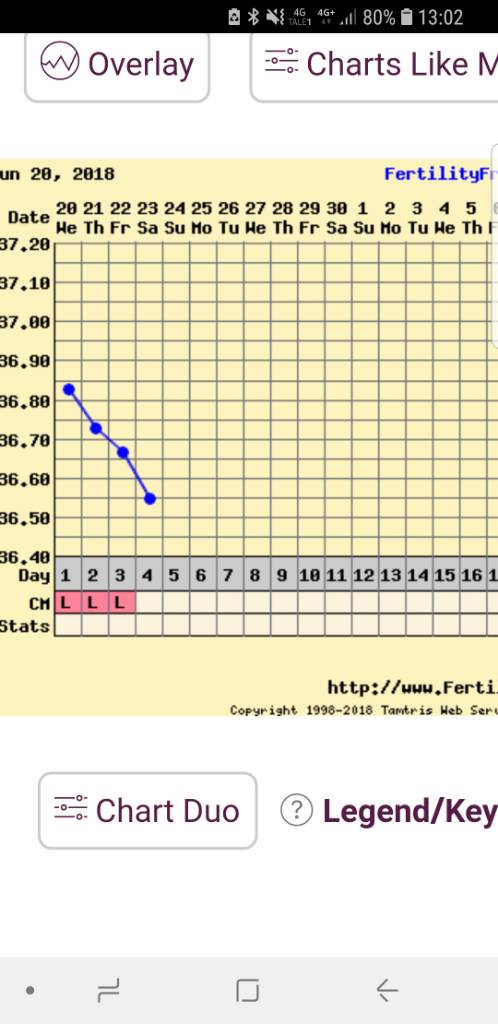 De 3 siste temperaturene er litt tvilsomme da jeg er blitt forkjølet. Feber søndag, med 37,65 grader. Føler meg i bedre form i dag, så lar dagens temperatur stå. Graviditetstest i dag viser en ultra-ultrasvak strek og jeg tenker at streken burde være sterkere 14 DPO. Fortsetter å tempe til jeg får mensen eller til jeg mot formodning får en positiv test.