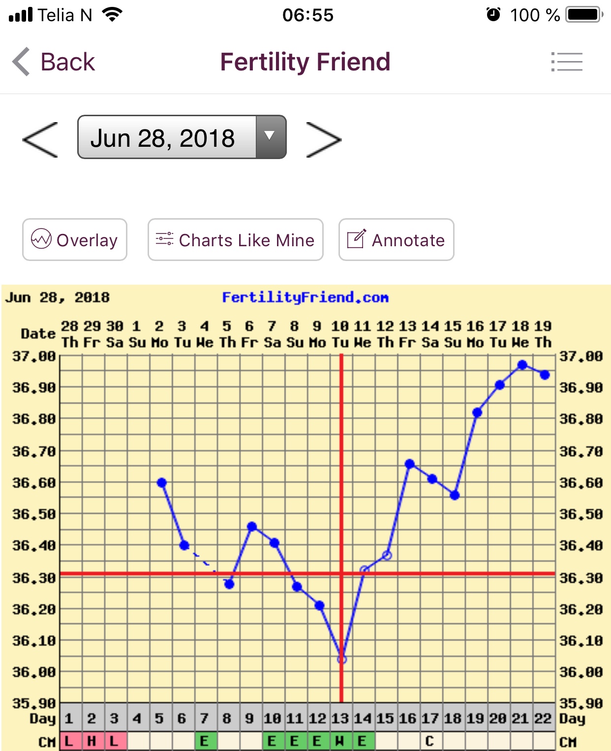 ja, får håpe det kommer opp noe som helst av graf. Men ser det er flere her som bruker EL test samtidig som temo for å finne ut syklusen sin. Men som du skriver så finner man mye info og sånt på FF. Som at man må ha 3 høye temp for att EL skal finne sted