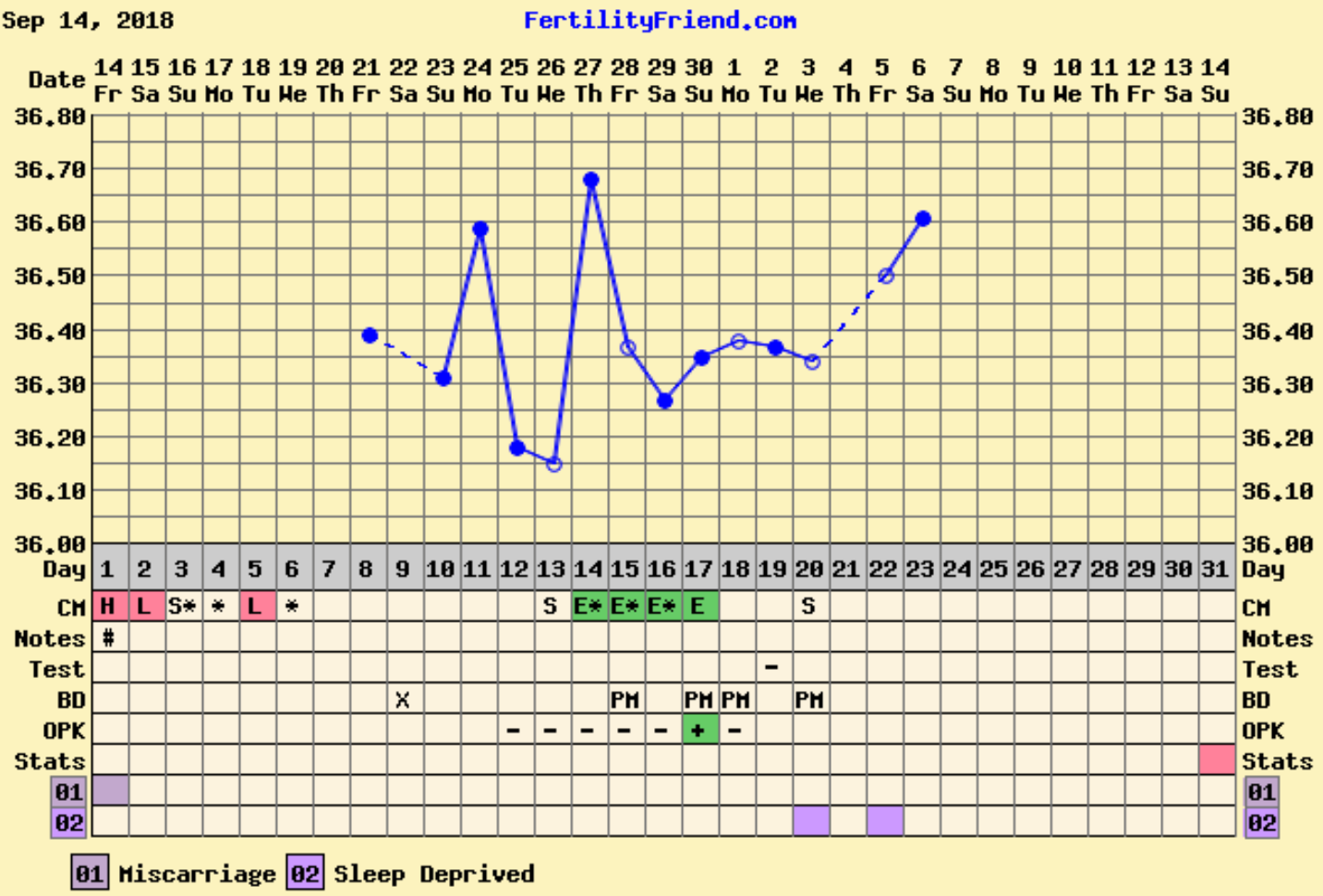 Her er sammenliknet med de to foregående PP. I august ble det kjemisk med positiv test på 11DPO.