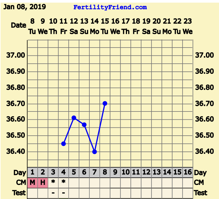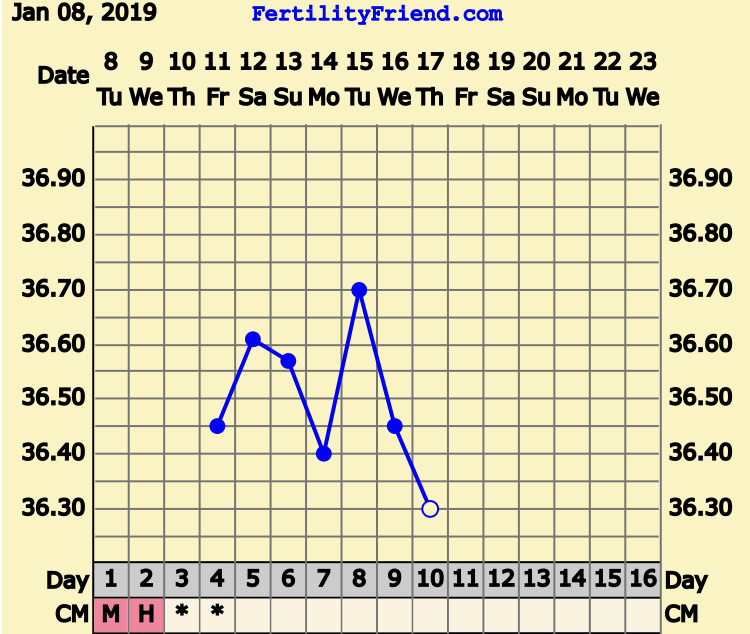 Søvnen ble fullstendig ødelagt i dag, så tenker at grafen kanskje ikke ser helt riktig ut... Tenker at morgendagen kanskje viser litt mer, og da er jeg jo 12DPO.Går vel rette vegen enda ?