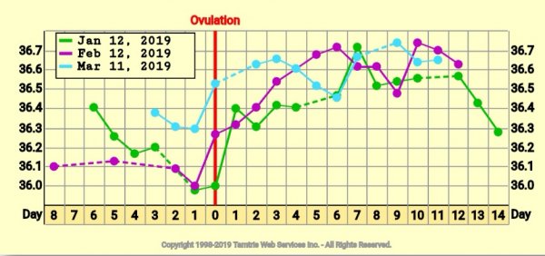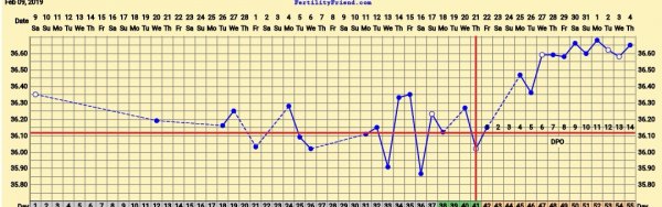 Hei alle lure tempedamer! Noen som kan hjelpe meg med å forstå denne grafen? Aldri hatt lignende temperaturer etter EL før. Idag hadde jeg bittelitt rosa på papiret når jeg var på do, men så mer ut som utvannet blod/lyserosa utflod enn skikkelig blod. Kan det være at jeg får mensen allerede?!