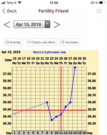 Da trykket jeg på discarded på ff. Så tempen burde egentlig vært enda lavere? Siden temperaturen min da har steget litt en halvtime før? For det er jo ganske spennende. For Da kan det være festedipp så fall. Kjente jo et godt stikk på venstre side av magen i går 7 dpo.