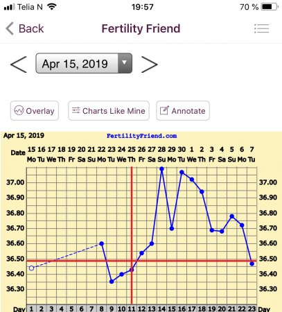 Syns testen burde vise seg positiv snart..får jo litt troen, når tempen ser ut til å gå opp, og jeg kan skimte noe som ser ut som strek.. men egentlig tror jeg liksom ikke