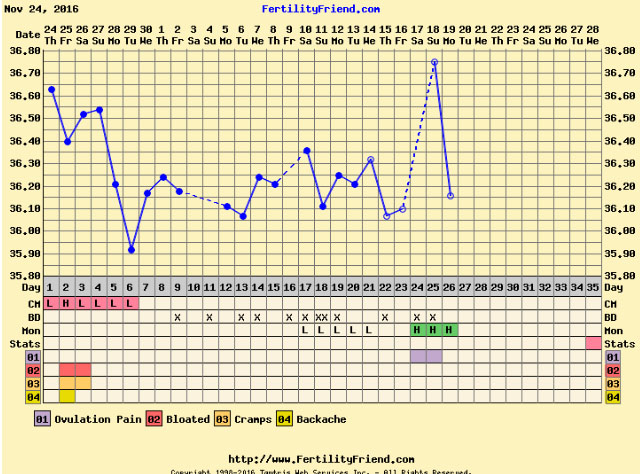 Bemerket meg at tempen har økt idag. Ikke at jeg aner hva det betyr, men jeg lurer jo på om det har noe med at jeg tempet litt sent? Legger ved klokkeslettene de siste dagene: 06:30, 05:45, 06:30, 06:30, 05:30, 06:55, 08:10, 08:30. Sover generelt urolig, før hver temping. Glemte å ta ukens første el-test, men tar en senere idagFF mente også at jeg var fertil for noen dager siden, da CF var creamy eller noe.