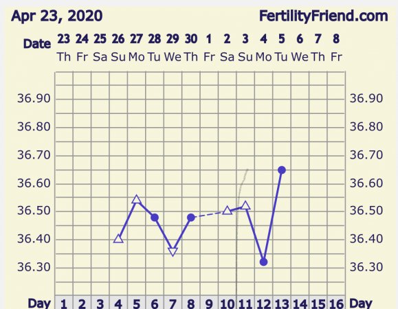 Sovet veldig urolig i natt så denne målingen i dag tar jeg med en klype salt:shy: venter ikke el før i morgen så kan jeg stole på denne da? Jeg får bare se i morgen hvordan det ser ut! Hadde ekstreme el smerter i går også og følte meg uvel føltes ut som om jeg var sjuk:hilarious: men jeg er ikke det! :p Men el er rundt hjørnet! Masse el slim så kan hende jeg får el en dag før også :happy: hadde vært digg det:)